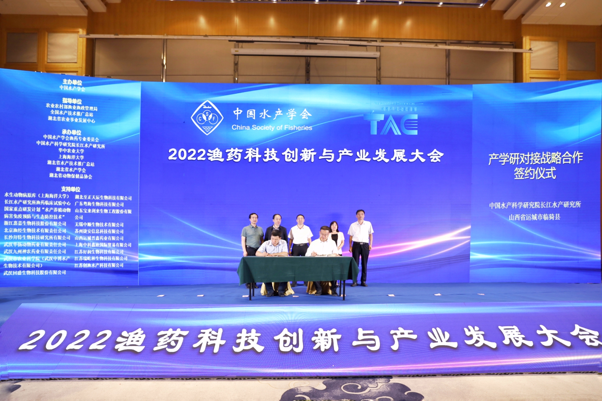 本次大会首次进行了产学研对接战略合作签约仪式,为促进渔药等水产养殖投入品科技成果转化应用提供了平台。