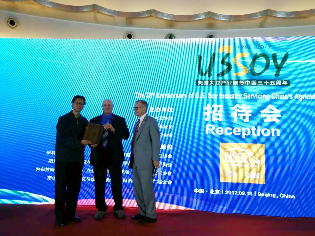 18日晚,陈述平处长受邀代表我站会参加美国大豆产业服务中国35周年招待会。美国驻华大使出席并致辞:美国愿与中国水产养殖业等产业一起,手挽手,走向互利共赢的新明天。会上,我站会被授予“助力行业,合作共赢”合作伙伴纪念牌。