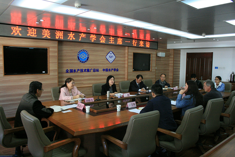 10月30日,应我会邀请,美洲水产学会主席杰西.特留申斯基一行来我会拜访。肖放秘书长出席接待活动,张文副秘书长主持接待。双方回顾了两会成功合作的经验,梳理了共识,探讨了进一步合作的领域和潜力,展望了两会合作的美好未来。双方一致认为发挥两会在国际渔业上的和平桥梁作用,通过交流和合作中可促进各国渔业人士友好交往、和睦相处,可加深理解、减少偏见、增进包容,对促进世界渔业和平发展有着独特作用。双方同意在本次会议后,通过开创多层次的合作途径,建立更有效的合作机制,为中美科研人员搭建更广阔的合作和交流平台,共同在渔业资源保护和可持续利用、渔业生态环境管理和保护、休闲渔业发展等多个领域取得更多的合作研究成果,在人才培养、水产科学普及、科技期刊、两会会员互认并广泛交流和科研项目等方面有着更实质性的合作。