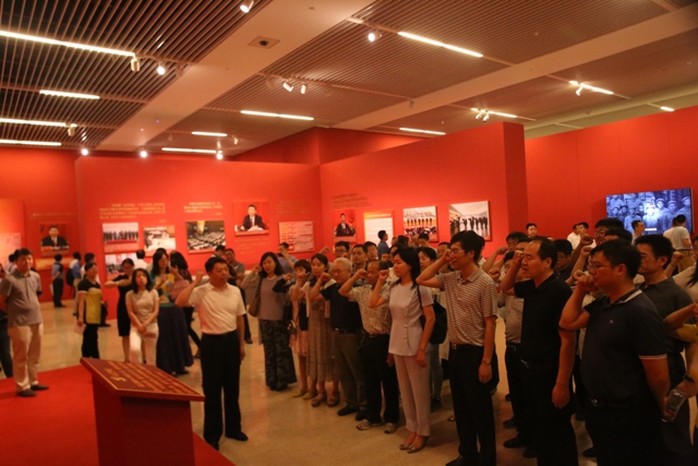 作为此次活动的一项重要议程,“不忘初心、牢记使命”重温入党誓词宣誓仪式在2号展厅举行。党员们面对鲜红的党旗,再一次举起右手,重温入党誓词,“我志愿加入中国共产党,拥护党的纲领,遵守党的章程……”庄严的宣誓、铿锵的誓词,坚定的承诺、嘹亮的声音,使在场的每一位党员又一次接受了心灵洗礼,进一步激发了党员的党性热情,进一步强化了党员不忘初心、牢记使命的党性意识。