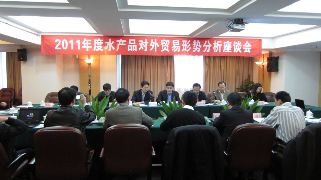 为总结2011年各地水产品进出口贸易工作开展情况,分析今年我国水产品进出口贸易形势,预测明年水产品贸易走势,提出进一步促进水产品贸易发展的有效建议, 2011年12月8-9日农业部渔业局和我会在广西北海市召开了水产品对外贸易形势分析座谈会。部分水产品出口省(区、市)渔业主管部门和水产品对外贸易跟踪研究专家共二十多人参加了会议。农业部国际合作司农业贸易处张明杰副处长、农业部渔业局刘欠非副处长、广西畜牧水产兽医局李昭信处长出席会议并致辞。座谈会由我会陈述平主任主持。