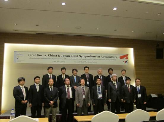 2013年4月29-30日,由中国水产学会,日本水产科学学会,韩国水产和水生态科学学会联合举办的首届中日韩联合水产养殖学术研讨会在韩国丽水召开。亚洲渔业学会理事长、我会常务理事、上海海洋大学黄硕琳副校长率团代表中国水产学会出席大会。4月30日上午中日韩三方水产学会首先进行官方会晤,确定本次会晤的主题,并商定下届研讨会由中国水产学会承办。