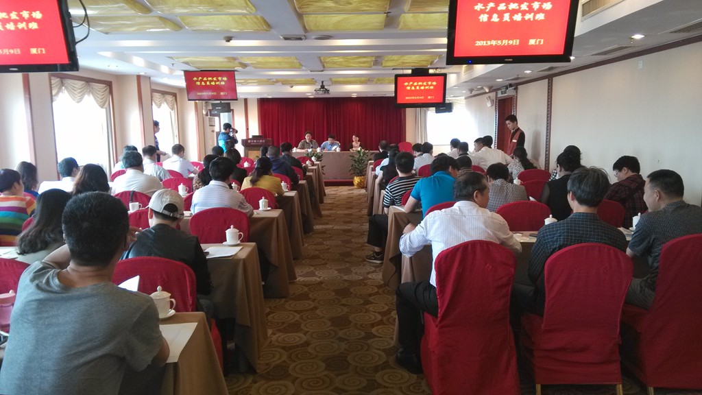 由于部分省份调整定点市场名单,信息员岗位流动较大,为使新老信息员能够熟练的使用采集系统,保证信息采集报送质量,5月9-10日,我会在厦门市召开了全国水产品批发市场信息员培训班。来自全国各地水产品信息采集定点批发市场的信息员和部分水产品市场信息分析专家组成员近90名代表参加。农业部渔业局市场与加工处刘欠非副处长在开幕式上致辞。培训班由我会渔业发展战略研究中心主任陈述平主持